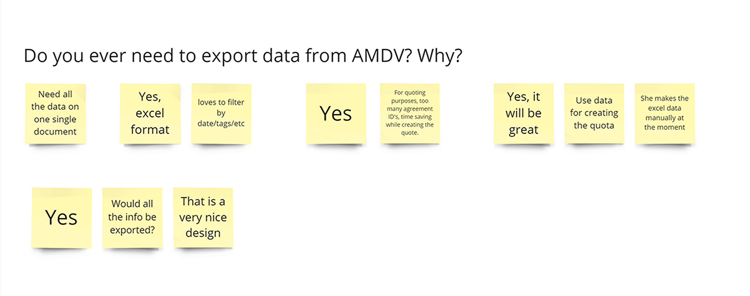 We conducted 10 sessions with 11 users to gather insights on AMDV, ensuring diverse personas were included, as each collects different information for their daily tasks.